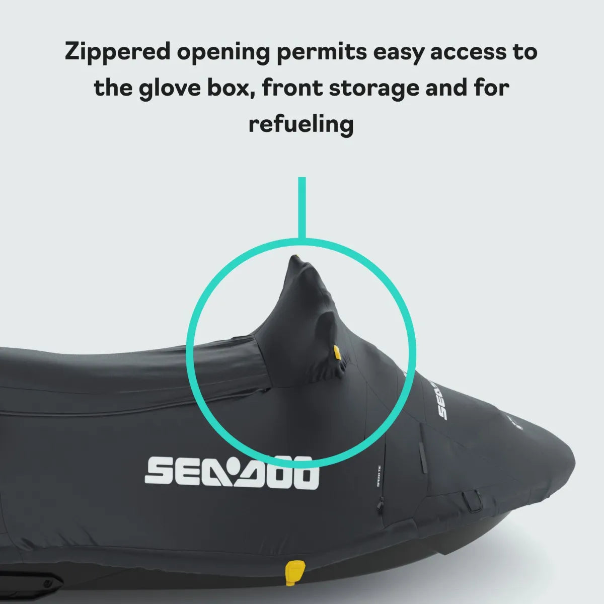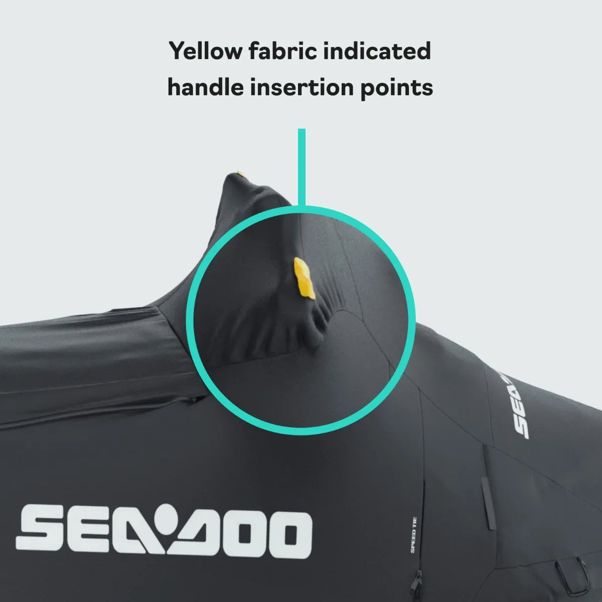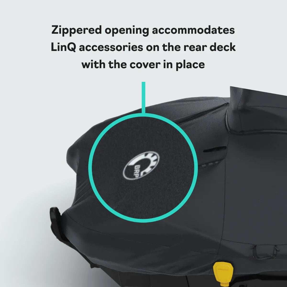 Constructed of heavy-duty and UV resistant polyester canvas fabrics, this cover is also reinforced with a double layer in high wear areas and features easy zippered access to everything including mooring cleats, The Speed Tie System, LinQ Lite Fender mounts and LinQ accessories on the back deck. Plus there's yellow fabric indicators for the handlebars, making installation easier and the soft inner liner helps protect the finish of your watercraft.