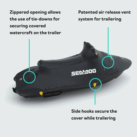 - Weather-resistant cover protects your watercraft during storage and trailering.